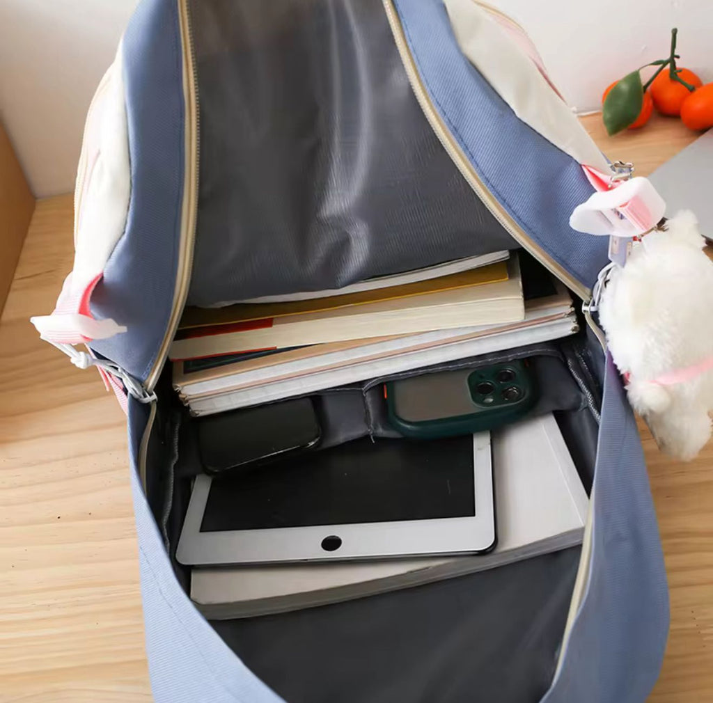 - ✔️ Mochila espaciosa para cuadernos y libros.